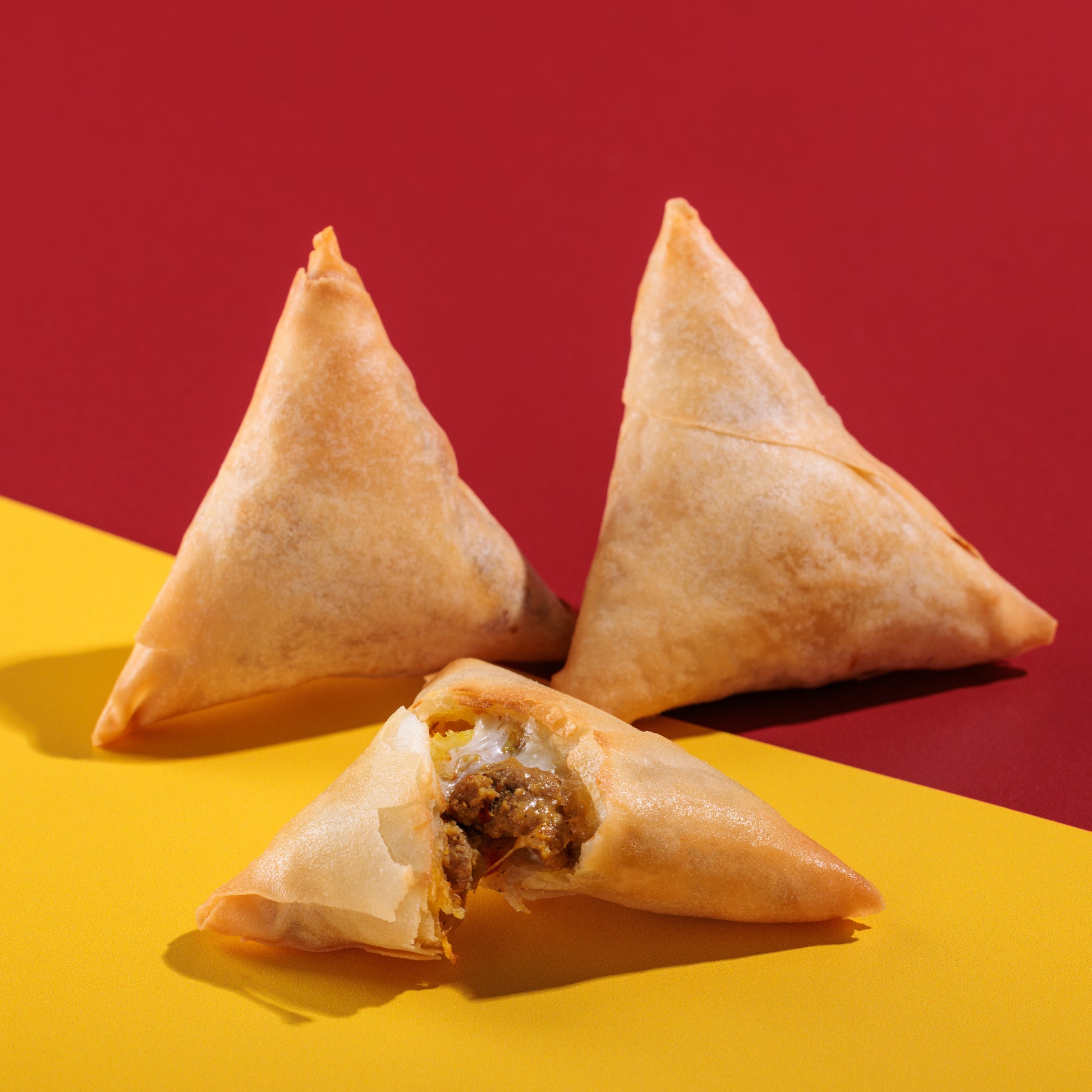 Indulge in our signature meat samosas, now with a delightful cheesy twist. Each crispy pastry is generously filled with seasoned meat and melted cheese, creating a harmonious blend of flavours that will leave you craving more.